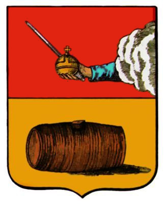 Третьим в докладе Сената "О гербах городам Вологодского наместничества", - после гербов Вологды и Тотьмы, значится герб города Вельска. Какие же идеи были приняты Волковым при составлении первого вельского герба? Ответ мы, в частности, найдем в его описании, приведенным в ПСЗ: "Дегтем наполненная бочка в золотом поле, в знак того, что обыватели того города оным производят знатный торг". В верхней части вельского герба был помещен наместнический герб. В ней в червленом (красном - О. А.) поле помещалась "часть из герба Вологодского Наместничества; выходящая из облака рука (десница - О.А.), держащая золотую державу с серебряным мечом"